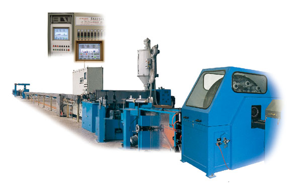 本设备可用于松套充油层绞式光缆的内、外护套的生产。同时也可用于平行双钢丝中心束管式光缆和(ADSS)全介质自承式架空光缆的挤出生产。